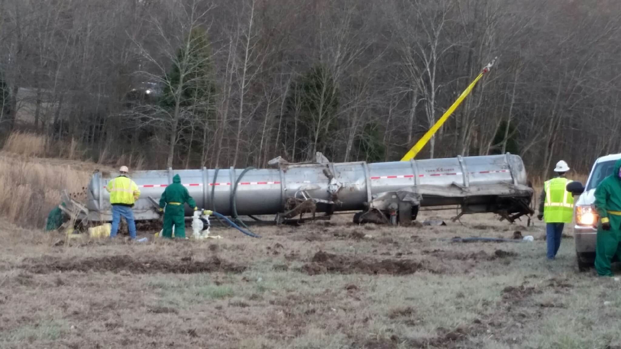 tractor trailer carrying 3,500 gallons of sulfuric acid overturned on I-24