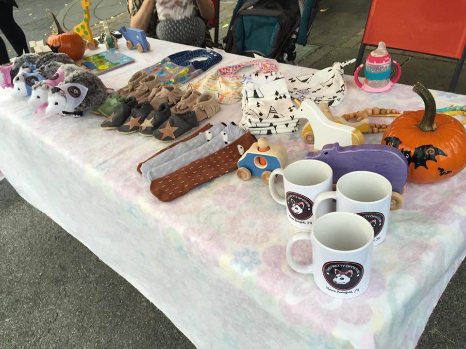 You will find adorable handmade bibs, baby clothing, moccasins, handmade blankets, Ecoemi baby sweatsuits, organic cotton products, handmade wooden toys, Adorable stuffed opossums, brands like Lulu and Roo and more.
