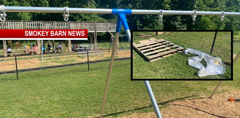 Millersville Police told Smokey Barn News that the thieves didn’t take the swing metal framing because they were concreted in but they did take the swings and chains. All brand new equipment. Even a baby-changing table was taken.