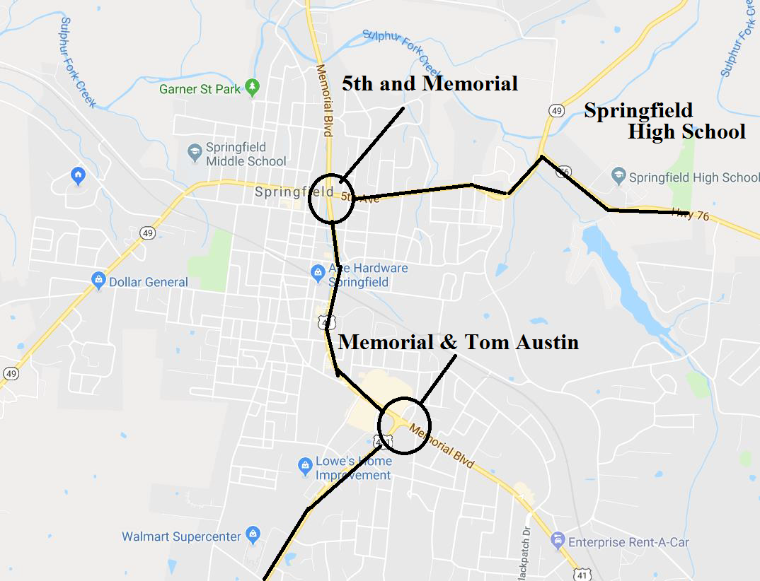 On May 21st, 2019 at 11:00 AM, the Lady Jackets will depart from Springfield High School on the way to Murfreesboro (see route below) to bring the state championship back to Springfield.