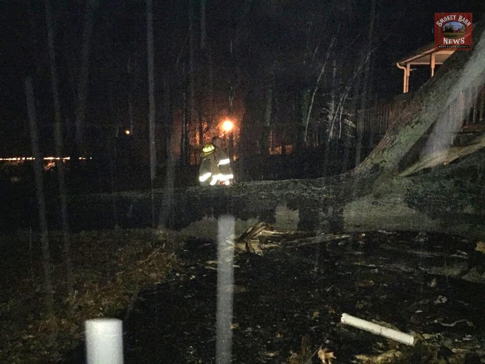 The call came into 911 around 1:30am Sunday morning. The home is located near Hwy 49 and Carr Creek. The caller said that a huge tree had fallen through a home.