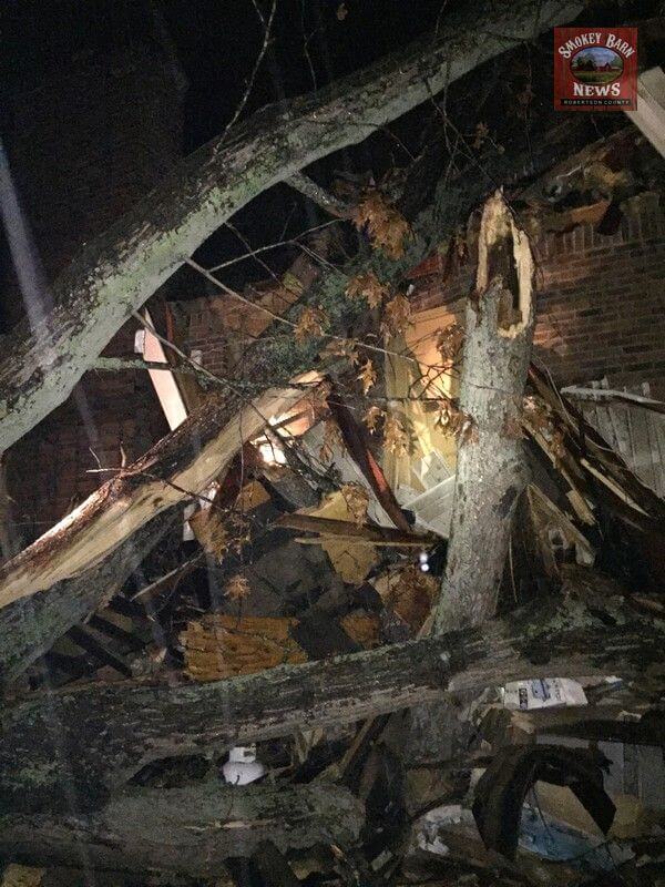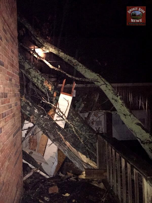 SPRINGFIELD TENNESSEE: (Smokey Barn News) – A Springfield home sustained heavy damage after a very large tree crashed through the roof during Sunday’s strong winds and rain.