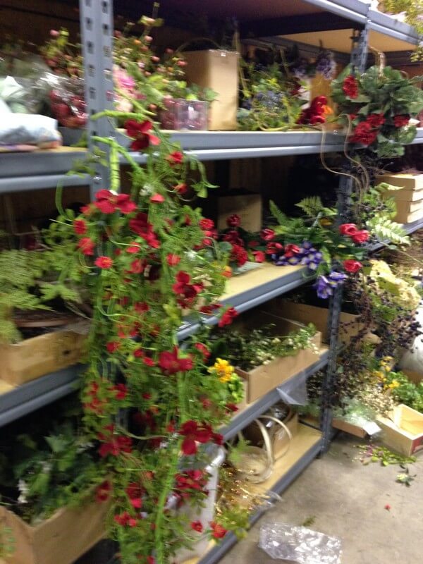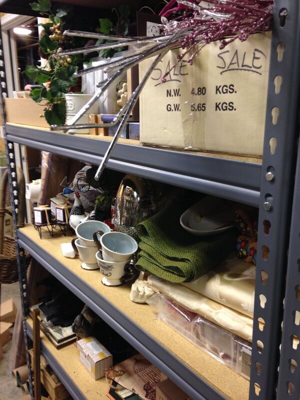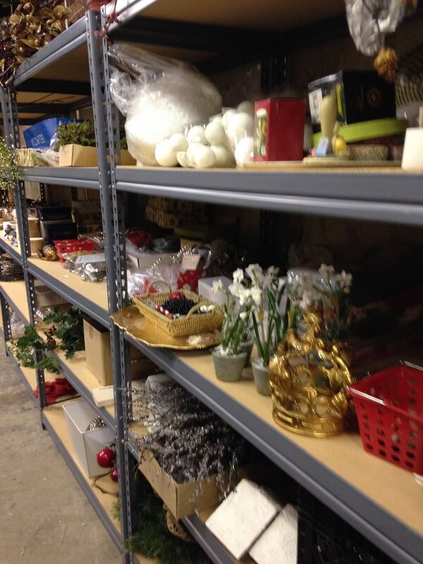 Both warehouses are busy places right now as we prepare for this sale. Burdett’s stock room needs to be cleared out so Sandy and the retail team are working every day finding items to add to the sale. Garlands and greenery, toys, linens, chairs and tables–all coming out of the stock room for the sale. AND everything will be discounted 50-75%!!