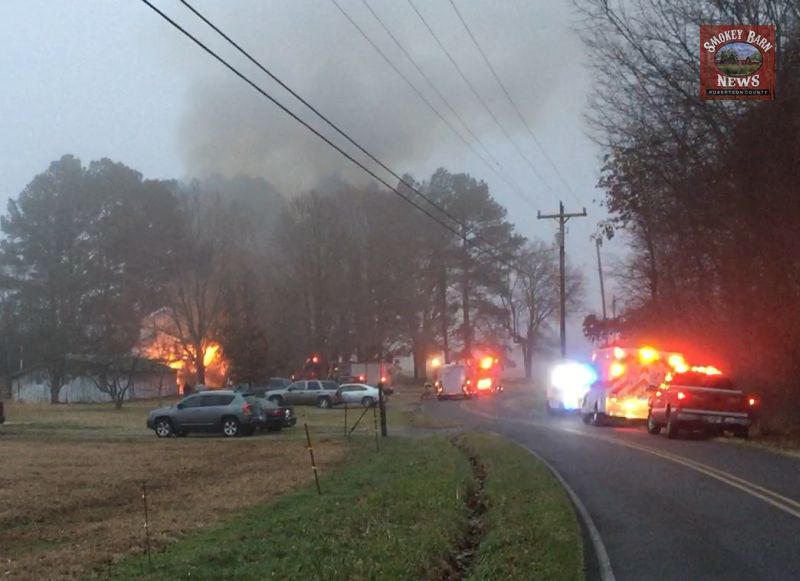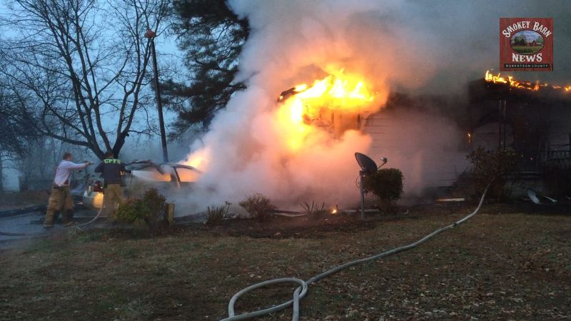 The family told Smokey Barn News that the sole occupant of the home, Sally Wilson, 85, singed her hair on the way out of the home but otherwise escaped the home safely.