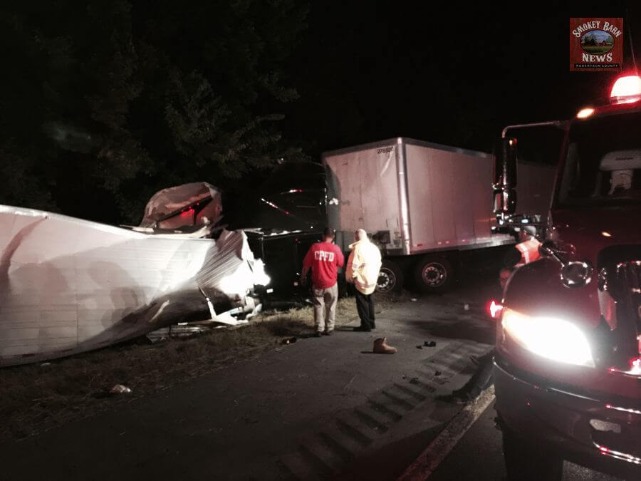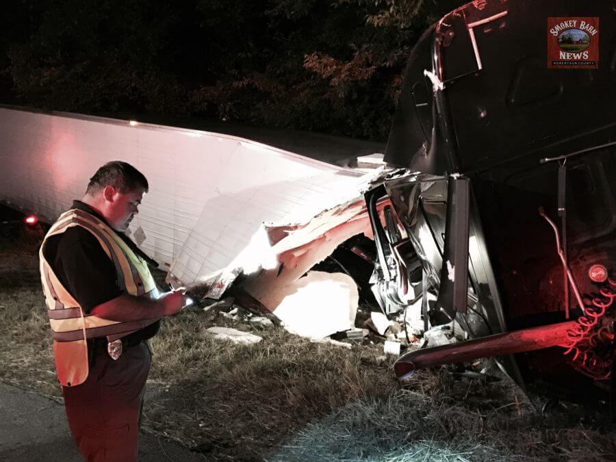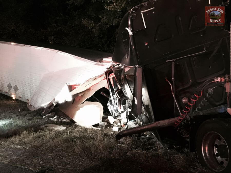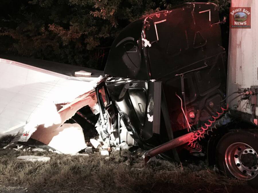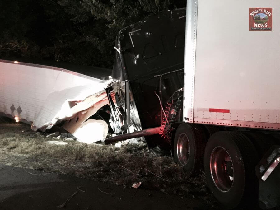 CROSS PLAINS TENNESSEE (Smokey Barn News) Two semi trucks collided on I-65 South at the 110 mile marker after 11pm Monday evening. (Location of wreck) Officials are calling it a Rear end type collision. Both drivers were transported with injuries.