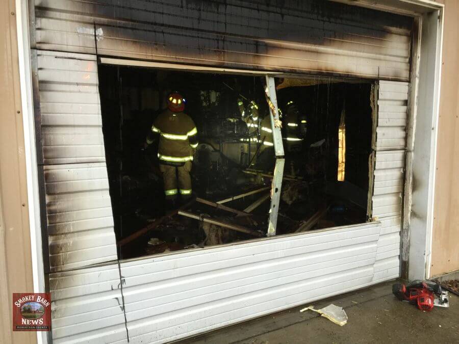 When firefighters arrived, what they saw was a two car all metal garage showing heavy smoke with visible fire coming out of a side door. Metal structures offer different challenges to firefighters because they trap heat inside.
